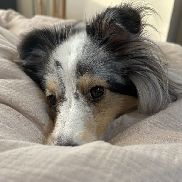 飼い主のふかふかお布団に一番乗りで寝る犬2